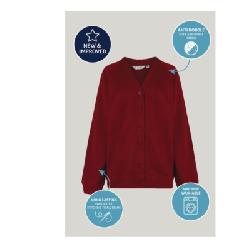 Self coloured button front cardigan with ribbed welt and cuffs and topstitch detail to strengthen seams.